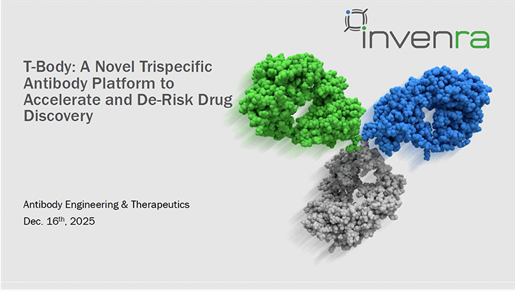 This presentation introduces Invenra’s T-Body™ Trispecific and B-Body® Bispecific Antibody Platforms, highlighting their robust manufacturability, IgG-like properties, and rapid 12x12 matrix screening workflow to accelerate and de-risk multispecific ADC discovery and development. | Antibody Engineering & Therapeutics Dec 16, 2025 Nicholas Marshall, PhD |