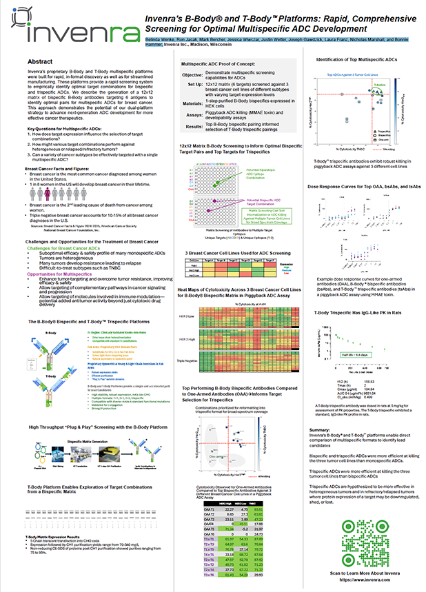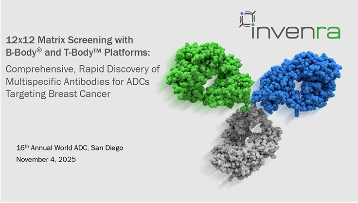 This presentation describes Invenra’s B-Body® Bispecific and T-Body™ Trispecific Antibody Platforms and a 12x12 matrix screening strategy that rapidly identifies and validates multispecific ADC candidates with superior cytotoxic activity across heterogeneous breast cancer models. | 16th Annual World ADC Nov 4, 2025 Bonnie Hammer, PhD | ||